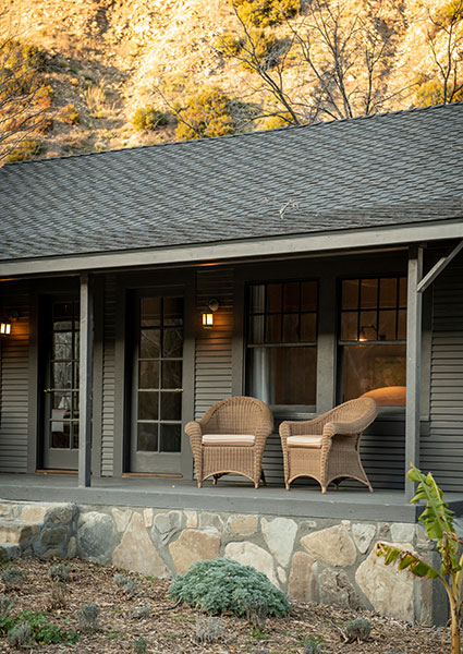 The Apricot Tree Cottage was moved here from it’s original location in Ventura, California. It sits perfectly among the apricot trees, embracing the home in perfect privacy. The spacious two-bedroom, one-bathroom structure is steps away from the year-round river — facing sweeping views of the sprawling landscape.